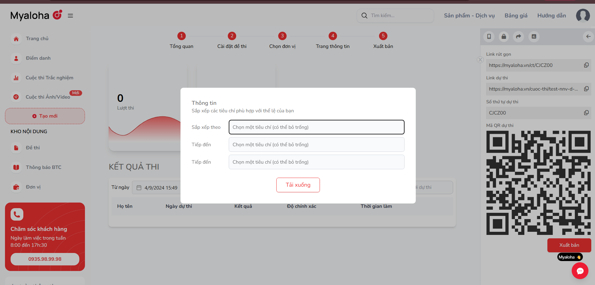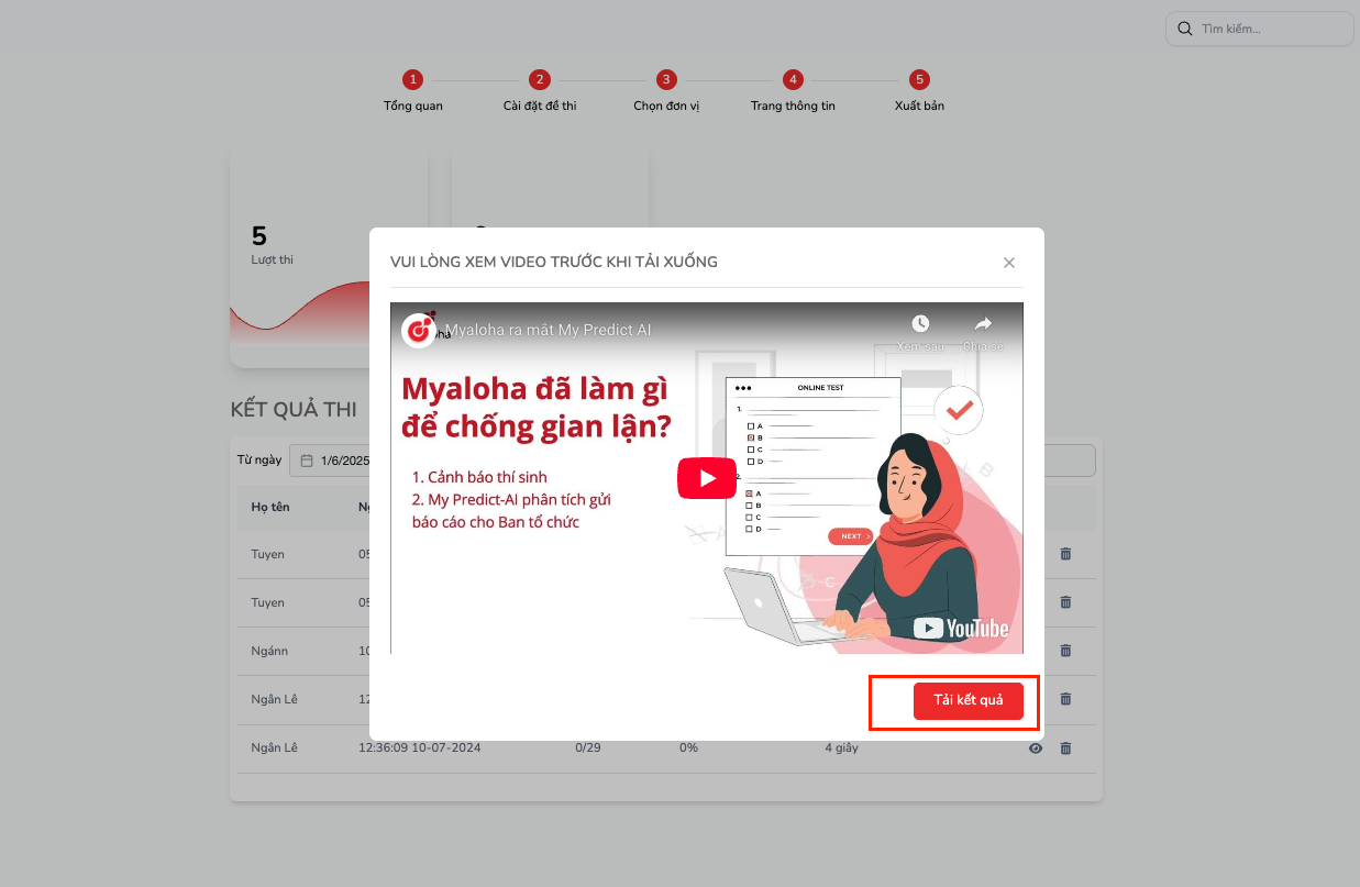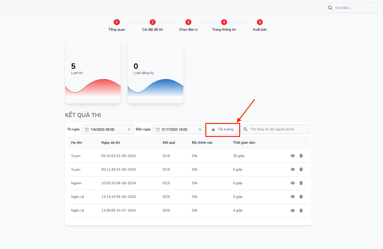 Tại bước 5, có thể tải xuống kết quả cuộc thi