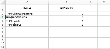 Thống kê lượt thi: Là sheet thống kê số lượt thí sinh tham gia thi theo danh sách đơn vị mà ban tổ chức tải lên.