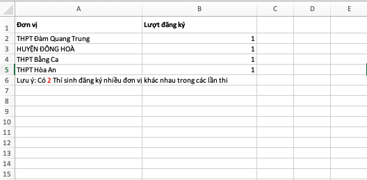 Thống kê lượt đăng ký: Là sheet có số lượt thí sinh đăng ký thông tin cá nhân vào trang thi theo danh sách đơn vị mà ban tổ chức tải lên.