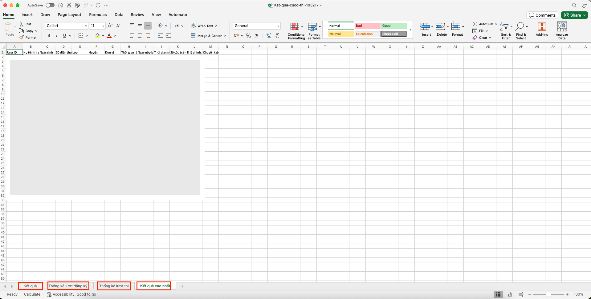 Kết quả cao nhất: Đây chính là sheet có kết quả cao nhất của thí sinh trong số tất cả các lần thi của thí sinh đó (trong trường hợp ban tổ chức cho thí sinh thi nhiều hơn 1 lượt)